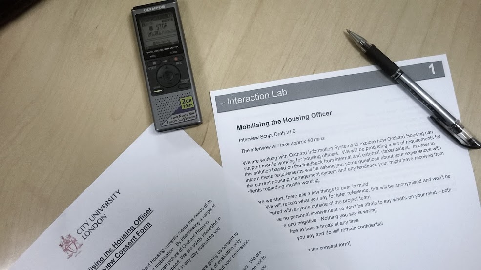 The discovery phase of the project lasting between February and April 2015 will involve stakeholder interviews with Orchard staff and field research shadowing housing officers within 5 sponsor organisations. Both activities will inform personas and requirements for a mobile working solution. In parallel City Interaction Lab will also be conducting a comprehensive review of mobile working solutions aimed at the housing sector. The culmination of all this work will be a White Paper on the state of mobile working within the housing sector including recommendations on how Orchard can design a solution to meet the needs of this market.